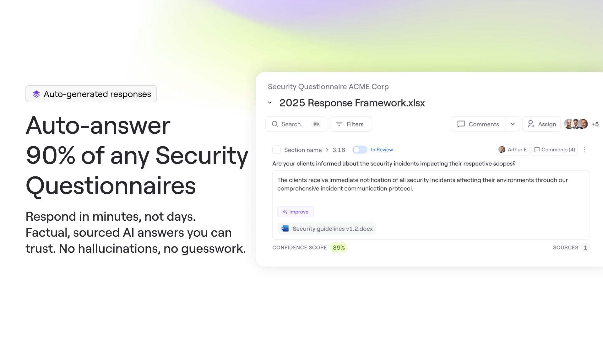 Organizations report up to an 87% reduction in questionnaire completion time. Automation transforms what once took weeks into hours, freeing teams to focus on strategic initiatives and accelerating deal closures.